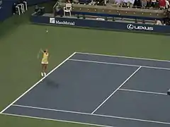 In the women's singles, fourth seed Serena Williams continued to make serene progress, as she defeated Séverine Brémond 6–2, 6–2. Williams was highly successful on her first serve, with a conversion rate of 69%, and a points-won rate of 90%. Sister Venus, the number seven seed, set up a quarter-final clash with her, as she also completed an easy victory, over ninth seed Agnieszka Radwańska, 6–1, 6–3. Serena and Venus, who had recently played each other in the Wimbledon final (with Venus emerging the victor), expressed dismay at their seedings, which meant that they met at an earlier round than the final. The pair had previously faced each other in the Open final, with Venus winning in 2001 and Serena the following year.[55] Also progressing was sixth seed Dinara Safina, who faced a difficult first set against Anna-Lena Grönefeld, 7–5, 6–0. Safina, who had encountered several difficult opponents before this round, revealed afterwards that she was in tears directly before the match, due to the physical exertion she had endured thus far. However, coach Zeljko Krajan had persuaded her to play, and she told reporters of her relief at having done so. Flavia Pennetta also navigated her way into the quarterfinals (the first time that she had reached this stage of a Grand Slam), defeating Amélie Mauresmo 6–3, 6–0. Mauresmo, a former world number one and two-time Grand Slam champion, played an error-strewn match, in which she served 14 double faults and hit 40 unforced errors.[56]
