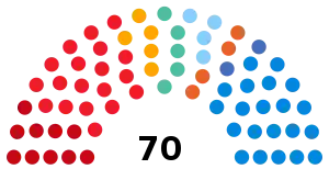 Last election 42 seats, 49.8% 28 seats, 49.2%