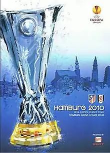 The 2010 UEFA Europa League Final was the final match of the 2009–10 UEFA Europa League, the first season of the revamped European football competition formerly known as the UEFA Cup. Played at the Volksparkstadion in Hamburg, Germany, on 12 May 2010,[5] the match was won by Spain's Atlético Madrid, who, after extra time, beat England's Fulham 2–1.[6]