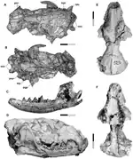 - ↑ Guillermo W. Rougier; Sebastián Apesteguía & Leandro C. Gaetano (2011). "Highly specialized mammalian skulls from the Late Cretaceous of South America". Nature. 479 (7371): 98–102. Bibcode:2011Natur.479...98R. doi:10.1038/nature10591. PMID 22051679. S2CID 4380850. Supplementary information