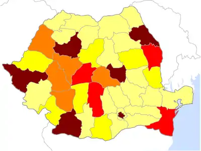Romania is the country with the highest poverty levels in the European Union.[7] More than 30% of the population lives on less than $5 per day. In a report conducted by the Presidential Commission for the Analysis of Social and Demographic Risks is specified that there are visible discrepancies between social strata, privileged groups benefiting of higher wages and pensions in comparison with the rest of the population.[8] Bankruptcy of many companies thickens the unemployment rate, in July 2013 reaching the value of 7.6%, highest since onset of the economic crisis in 2010.[9] Other companies, including state companies – Romanian Post, Romanian Railways, are on the verge of bankruptcy, being forced to make cutbacks.