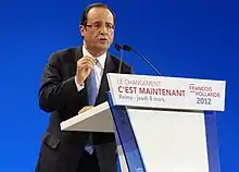 François Hollande at a meeting during 2012 political campaign.