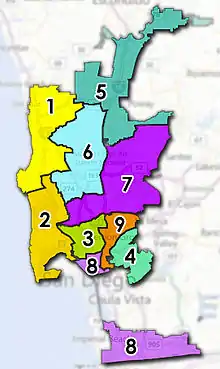 - ↑ Gustafson, Craig (November 19, 2011). "Republicans seek majority on San Diego council". San Diego Union Tribune. Retrieved November 9, 2012.
