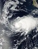 The season's first tropical storm formed on May 15,[8] coinciding with the official start of the Pacific hurricane season.[9] On average, a tropical cyclone develops in May in the eastern Pacific every other year.[10] The formation of Barbara in late May marked only the fifth time since 1949 that two tropical storms formed during the month, with the other seasons being 1956, 1984, 2007, 2012, and 2021.[11][12][13]