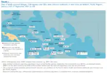 Outbreaks of Zika virus, dengue and chikungunya in Oceania from January 2012 to September 2014.[4]