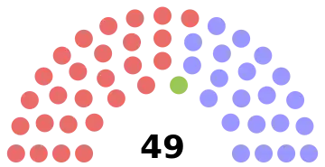 | Total seats | 8 | 3 | 14 | 11 | 8 | 5 | 49 | ||