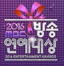 The 2016 MBC Entertainment Awards (Korean: MBC 방송연예대상; RR: MBC Bangsong Yeon-ye Daesang) presented by Munhwa Broadcasting Corporation (MBC), took place on December 29, 2016, at MBC Public Hall in Sangam-dong, Mapo-gu, Seoul. It was hosted by Kim Sung-joo, Jun Hyun-moo and Lee Sung-kyung. The nominees were chosen from MBC variety, talk and comedy shows that aired from December 2015 to November 2016.[1][2][3]