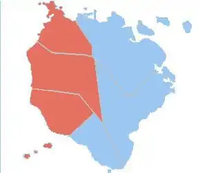 Sangunniang Panlalawigan districts of Marinduque. Areas shown in red represent the first district; blue represent second district.