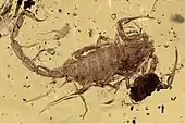 A scorpion belonging to the superfamily Buthoidea and the family Palaeoburmesebuthidae.[6] |