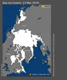 - ↑ "March | 2019 | Arctic Sea Ice News and Analysis". Archived from the original on 25 April 2020. Retrieved 11 May 2020.
