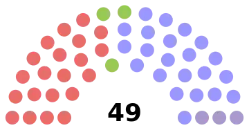 | Total seats | 8 | 3 | 14 | 11 | 8 | 5 | 49 | ||