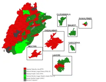 | Pakistan Muslim League (N) | 10,529,723 | 31.70 | 63 | 15 | 78 | |||