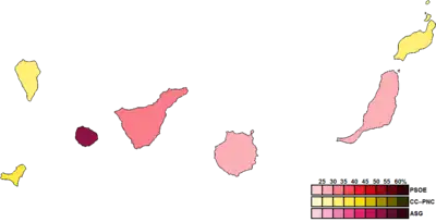 ![]() Constituency results map for the Parliament of the Canary Islands | ||||||||||||||||||||||||||||||||||||||||||||||||||||||||||||||||||||||||||||||||||||||||||||||||||||||||||||||||||||||||||||||||||