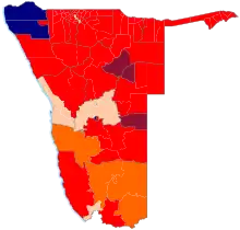 Hage Geingob of SWAPO was re-elected to the presidency, although his vote share was reduced from 87% in 2014 to 56%, their lowest vote share for a presidential election in the party's history.[3] SWAPO also retained their majority in the National Assembly, but lost their two-thirds supermajority.[4] SWAPO had held a two-thirds majority since the 1994 elections.[5]