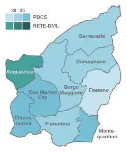 | Libera San Marino | 2,964 | 16.49 | 10 | –14 | |||