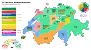 - ↑ Michel, Felix; Metzler, Aline; Schmidli, Julian; Zehr, Angelo (21 October 2019). "The Swiss Elections 2019: All Results in Detail". Swissinfo. Retrieved 21 October 2019.