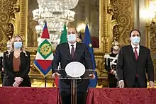 Between December 2020 and January 2021, discussions arose within the government coalition between Conte and Matteo Renzi, former Prime Minister and leader of Italia Viva.[14] Renzi called for radical changes to the government's economic recovery plans after the COVID-19 pandemic, and also demanded that Conte cede his mandate over the secret services coordination task.[15] During his end-of-year press conference, Conte declined Renzi's requests, asserting that he still had a majority in the Parliament.[16]