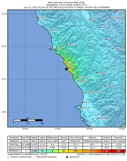 - ↑ "M 5.8 – 10 km WSW of Mala, Peru". earthquake.usgs.gov. USGS. Retrieved June 26, 2021.