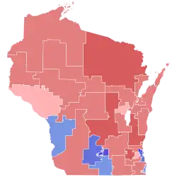 La Follette: 40–50% 50–60% 60–70% 70–80% 80–90% >90% Loudenbeck: 40–50% 50–60% 60–70% 70–80% 80–90% >90% Tie: 40–50% 50% No data | |||||||||||||||||