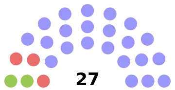Last election 13 seats, 36.73%[lower-alpha 1] 6 seats, 29.40% 8 seats, 30.56%