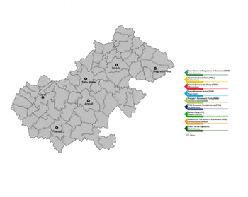 Current distribution of administrative mandates at local political level in Romania