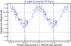 - 1 2 Watson, Christopher (4 January 2010). "TY Corvi". The International Variable Star Index. American Association of Variable Star Observers. Retrieved 11 June 2015.