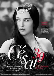 ![]() The official César Award poster features French actress Isabelle Adjani, in the 1994 film La Reine Margot. | |