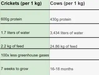 As the world's population continues to grow, experts believe that current food supplies will not be able to supply the population.[29] Thus, a sustainable food source is critical. Studies have shown that entomophagy, the consumption of insects, has the potential to sustain a growing population.[30] Insects such as crickets require less feed, less water, and provide around the same amount of protein that chickens, cows, and pigs do.[30] Crickets can be ground into a protein flour. In one study,[31] researchers provide an overview of the process of 3D printing insect flour into foods that do not resemble insects; thus, keeping the nutritional value of the insect intact.