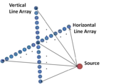 In order to estimate the location of a source in 3D space, two line sensor arrays can be placed horizontally and vertically. An example is a 2D line array used for underwater source localization.[16] By processing the data from two arrays using the maximum likelihood method, the direction, range and depth of the source can be identified simultaneously. Unlike the binaural hearing model, this method is similar to the spectral analysis method. The method can be used to localize a distant source.