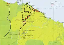 The 163rd Regimental Combat Team was attached to Major General George Alan Vasey's 7th Australian Division and Doe assumed command of the positions on the Sanananda track from Brigadier Ivan Dougherty on 3 January 1943.[9]: 330 The front line consisted of a raised road with Japanese positions on relatively dry ground astride it, surrounded by jungle swamp. Roadblocks had been established behind the Japanese positions but they had not been budged; both sides resupplied their positions through the swamp. Vasey's plan was for the Americans to fix the Japanese in position while he attacked with Brigadier George Wootten's 18th Australian Infantry Brigade, supported by Australian armor and artillery consisting of M3 Stuart light tanks of the 2/6th Armoured Regiment and 25 pounders of the 2/1st Field Regiment.[9]: 332
