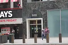 Vornado Realty Trust assumed RFR's mortgage in 2013 and paid $8.5 million that RFR owed on the mortgage. At that point, the Korein family still owned the land under 608 Fifth Avenue.[88][89] The next year, clothing retailer Topshop announced that it would lease the retail space[90][91] for $15 million, replacing the Lacoste store.[23] However, the Topshop store closed in 2020 because Topshop went bankrupt.[66] In June 2020, Vornado gave up its lease on the building.[66][92] The deal generated $70 million for Vornado, which at the time was experiencing financial losses due to the COVID-19 pandemic in New York City.[93] By 2021, the empty storefront was being used to advertise HBO Max's release of the film No Sudden Move;[94] it also hosted New York Fashion Week the same year.[95] Fashion retailer Aritzia leased a 33,000-square-foot (3,100 m2) storefront at the building in mid-2022.[96][97]
