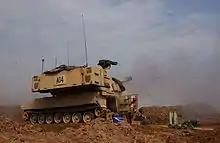 The 4th Battalion, 82d Field Artillery, organic to the 3d Armored Division, deployed from Hanau, Germany as the Direct Support artillery battalion for 2d Brigade. The battalion was equipped with M109A2/3 howitzers and M981 Fire Support Team Vehicles (FISTV). The main body of the battalion arrived in Saudi Arabia on or about 1 January 1991, and remained in theater until 18 May 1991. Upon returning to Germany, the battalion started to inactivate, but was later transferred to Fort Polk, LA where it served as part of the 42d FA Brigade until inactivated in June 1995.[3]