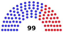 | Beginning of the next Legislature | 66 | 33 | 99 | 0 | |