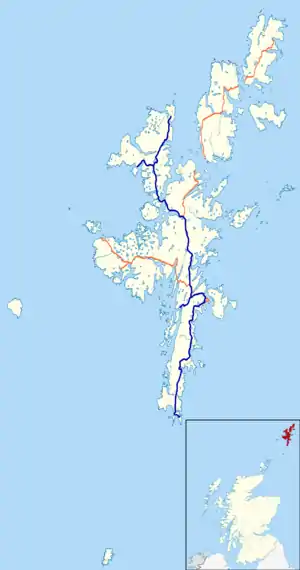 The A970 is a single-carriageway road that runs from south to north of Mainland Shetland, Scotland.[1][2][3] The road also spurs to Scalloway[2] and North Roe.[4]
