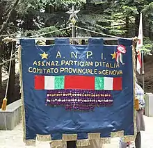 Associazione Nazionale Partigiani d'Italia (ANPI; National Association of Italian Partisans) is an association founded by partisans and participants of the Italian Resistance against the Italian fascist regime and the subsequent Nazi occupation during World War II.[2] ANPI was founded in Rome in 1944,[3] as the war continued in northern Italy. It was constituted as a charitable foundation on 5 April 1945. It persists due to the activity of its anti-fascist members.