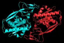 Structure of aspartoacylase dimer. Generated from 2I3C.[5]