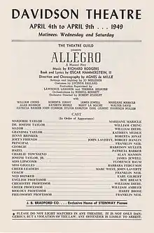 Program for Allegro's US tour, April 1949 (Davidson Theatre, Milwaukee)