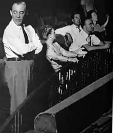 Sondheim later expressed his view of de Mille's directing, calling her "a horror. She treated the actors and singers like dirt and treated the dancers like gods ...[she was,] I think, an extremely insensitive woman, an excellent writer, and a terrible director, in terms of morale, anyway. That was my first experience of bad behavior in the theatre."[12] However, Rufus Smith, who played the minor role of the football coach, stated, "Never again in my life will I experience what it is like to stop a show cold, by doing exactly what she taught me".[13] The immense job of directing the play finally proved too big for de Mille, who stated "I can't do the new dances and the new songs and the new book," and Hammerstein stepped in to direct the dialogue.[7] According to Rodgers biographer Meryle Secrest, at this point the cast was up in arms over de Mille's treatment of them.[14] James Mitchell, one of the dancers in the production, later stated that de Mille was better at directing dancers than actors, as actors come to the stage with preconceived notions about how to play a part, and dancers do not.[13]