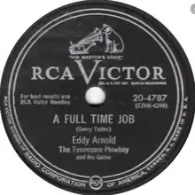 "A Full Time Job" is a song written by Gerry Teifer, sung by Eddy Arnold, and released on the RCA Victor label (catalog no. 20-4787). In July 1952, it peaked at No. 1 on Billboard's country and western jockey chart (No. 3 best seller and juke box).[1] It spent 18 weeks on the charts and was ranked No. 15 on Billboard's 1952 year-end country and western best seller chart and No. 21 on the year-end juke box chart.[2]