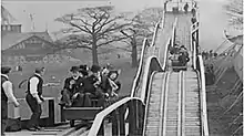 A Switchback Railway is an 1898 British short black-and-white silent actuality film, directed by Robert W. Paul, featuring patrons riding on a switchback railway at a fairground at Alexandra Palace, where Blandford Hall can be seen in the background. "This dynamically composed actuality," according to Micahael Brooke of BFI Screenonline, "was clearly a success, so much so that James Williamson and the Riley Brothers released their own switchback railway films only a few months later." It is included on the BFI DVD R.W. Paul: The Collected Films 1895-1908. It is arguable that the filmmaker, R.W. Paul, missed a trick by not placing the camera inside one of the moving cars to simulate the ride from the passenger's perspective, although he might have had difficulty keeping the camera steady. Nonetheless, the film was clearly a success, so much so that James Williamson and the Riley Brothers released their own switchback railway films only a few months later.[1][2]