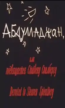 Abdullajon or Abdulladzhan, ili posvyashchaetsya Stivenu Spilbergu (transliteration of the Russian title of the film meaning "Abdullajon or Dedicated to Steven Spielberg") is a 1991 Uzbek science fiction comedy film directed by Zulfiqor Musoqov.[1] Abdullajon is the first Uzbek science fiction film and is considered by many critics, filmmakers, and fans to be the greatest Uzbek film made in post-Soviet Uzbekistan.[2]