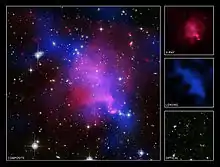 - 1 2 "Cosmic 'train wreck' defies dark matter theories - space -". New Scientist. Retrieved 16 August 2007.