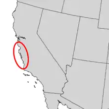 The northernmost tree was located in 1927 at 750 feet (230 m) elevation on Skinners Ridge to the east of the North Fork of the Little Sur River, but it's not known if it survived subsequent fires.[5]
