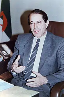 Disagreeing with the conditions under which the seizure of power took place, he participated in the first opposition to the nascent regime. He was one of the founding members[2] of the first opposition party created in May 1962 and held a position within the secretariat of this party under the direction of Mohamed Boudiaf, the Party of the Socialist Revolution (PRS). Barely escaping the arrest of PRS leaders decided by the government of the time, he plunged back into hiding and pursued opposition action, on behalf of the PRS, until the creation of the FFS of Hocine Aït Ahmed. Arrested at the end of 1963, he was released after an agreement was reached between part of the FFS leadership and the government.