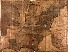 The continuity brought by Bradley's long employment during the tenure of five United States postmasters generals helped establish the budding postal service as a reliable provider. While not trained as an artist or cartographer, Bradley created innovative and detailed postal route maps that improved the office's efficiency. In 1796, Bradley drew one of the first comprehensive maps of the United States; it "represented the first clear cartographic break in European-dominated map making and introduced a new, more distinctly American style of cartography to the United States."[1] In 1800, Bradley oversaw the move of the federal government's post office from Philadelphia, Pennsylvania, to the new capital at Washington, D.C., briefly hosting the national post office in his own home.