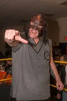 On the following episode of Impact!, Abyss was forced to give Chelsea's custody back to Desmond Wolfe, much to the reluctance of Chelsea. Later in the night, he competed in a three-way match against Mr. Anderson and Jeff Hardy to determine a number one contender to Rob Van Dam's TNA World Heavyweight Championship, which ended in a triple countout. After the match, Abyss turned heel by destroying both of his opponents and having a heated confrontation with Hogan.[39] The following week Abyss revealed that he was being controlled by an entity, who was coming to TNA, before returning Hogan's Hall of Fame ring to him, shoving it down his throat.[40] On the July 15 episode of Impact! the new top ten rankings were revealed with Abyss picking up the top spot to become the new number one contender to Rob Van Dam's TNA World Heavyweight Championship.[41] Abyss then began going after Van Dam with a new weapon, a board filled with nails, which he named Janice,[41] which led to Eric Bischoff booking him and Van Dam to face each other in a Stairway to Janice match for the World Heavyweight Championship, with Bischoff himself serving as the referee of the match.[42] The match took place on the August 12 episode of Impact!, when Van Dam defeated Abyss to retain the title. After the match Abyss joined Fourtune members A.J. Styles, Kazarian, Robert Roode, James Storm, Douglas Williams and Matt Morgan in assaulting Van Dam and the rest of EV 2.0, a stable consisting of former Extreme Championship Wrestling performers, during which he apparently hit Van Dam with Janice.[43] As a result of the attack Van Dam was sidelined with a storyline injury, which forced him to vacate the TNA World Heavyweight Championship the following week.[44] This led to people like Jeff Hardy, Hulk Hogan and members of EV 2.0 targeting Abyss in order to avenge their fallen friend.[44][45] At No Surrender Abyss defeated EV 2.0 member Rhino in a Falls Count Anywhere match.[46] Rob Van Dam returned on the September 23 episode of Impact!, confronting Abyss and demanding a match against him at Bound for Glory, which Eric Bischoff agreed to give him. Later that same night Abyss attacked Jeff Hardy, trying to make an example out of him, while also beating down the heavily taped up Van Dam, when he tried to make the save.[47] On the October 7 live episode of Impact! Abyss was about to be fired by Bischoff for manhandling TNA president Dixie Carter, but was saved by Van Dam, who threatened to quit the company if he wasn't allowed to face Abyss at Bound for Glory. Later in the night Carter agreed to let Van Dam face Abyss, but signed papers to have Abyss fired from TNA the day following the pay–per–view.[48] At Bound for Glory Van Dam defeated Abyss in a Monster's Ball match, after using Janice on him. At the end of the event it was revealed that the entity, who had been controlling Abyss, was an alliance of Hulk Hogan, Eric Bischoff, Jeff Jarrett and the new TNA World Heavyweight Champion Jeff Hardy, all of whom turned heel and aligned themselves with Abyss.[49] On the following episode of Impact! the stable was named Immortal, as it formed an alliance with Ric Flair's Fortune.[50] Afterwards, Abyss began attacking planted fans, which led to D'Angelo Dinero challenging him to a Lumberjack match.[51] The match took place at Turning Point, where Dinero's own brother and the rest of his lumberjacks turned on him, after being bought out by Eric Bischoff, and helped Abyss pick up the win.[52] The following month at Final Resolution Abyss defeated Dinero in a casket match.[53] On January 9, 2011, at Genesis Abyss replaced an injured A.J. Styles and defeated Douglas Williams, with help from an interfering Styles, to win the TNA Television Championship for the first time.[54] On the January 20 episode of Impact!, as Immortal was attacking Kurt Angle, Crimson made the save for him and hit Abyss in the back with Janice, causing him storyline injuries, which indefinitely sidelined him from TNA.[55]