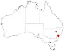 The species occurs on sandstone in dry sclerophyll forest in the Blue Mountains in New South Wales.[3] It was first formally described in 1916 by New South Wales Government Botanist Joseph Maiden in Journal and Proceedings of the Royal Society of New South Wales, based on specimens collected from Byrnes Gap near Yerranderie.[2] The species epithet honours botanical artist Margaret Flockton.[3]