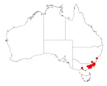 A. silvestris is endemic to south eastern Australia from around Bodalla State Forest in New South Wales in the north down to around the highlands in East Gippsland in Victoria where it is often situated on rocky hillsides alongside steep gullies, on alluvial flats and on the saddle of ridges where it grows in a range of soils over slate where it is usually part of open Eucalyptus forest communities and can form extensive forests.[3]