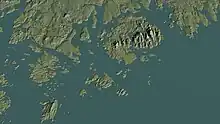 Acadia National Park encompasses a total of 49,075 acres (19,860 ha; 76.680 sq mi; 198.60 km2) as of December 31, 2017.[1] At least 30,200 acres (12,200 ha; 47.2 sq mi; 122 km2) on Mount Desert Island are included in the park, along with 2,900 acres (1,200 ha; 4.5 sq mi; 12 km2) on Isle au Haut, about 200 acres (81 ha; 0.31 sq mi; 0.81 km2) on smaller islands, and 2,366 acres (957 ha; 3.697 sq mi; 9.57 km2) on the Schoodic Peninsula.[note 1][10][11] As of 2015, the permanent park boundary, as established by act of Congress in 1986, included 12,416 acres (5,025 ha; 19.400 sq mi; 50.25 km2) of privately owned land under conservation easements managed by the National Park Service, which plans to acquire the land at some point.[2]