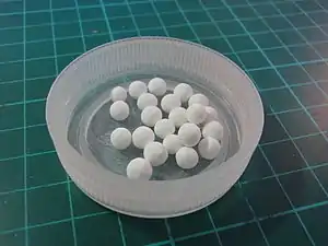 In high vacuum applications, activated alumina is used as a charge material in fore-line traps to prevent oil generated by rotary vane pumps from back streaming into the system.[2] A baffle of activated alumina can also replace the refrigerated trap often required for diffusion pumps, though this is rarely used.[3]